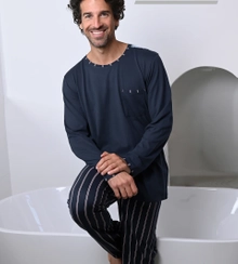 Piżama męska Ringella modal z dekoltem w serek z długim rękawem