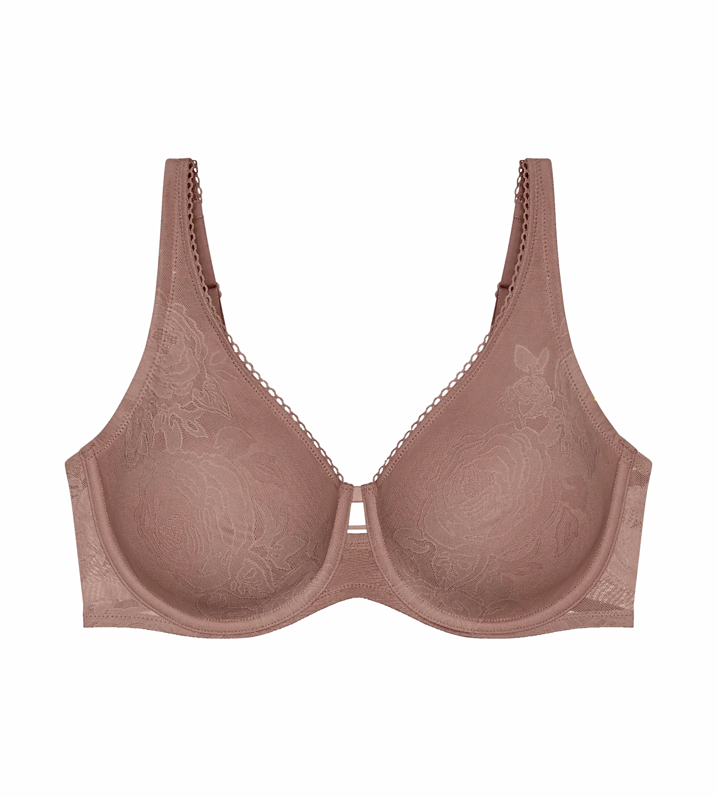 Seria: Shape Wild Rose Sensation Dessous marki Triumph - Biustonosz idealny dla pełniejszego biustu – optycznie zmniejsza i nadaje krągłości. Nie musisz rezygnować z głębokich dekoltów, bluzek zapinanych na guziki czy błyszczących materiałów.