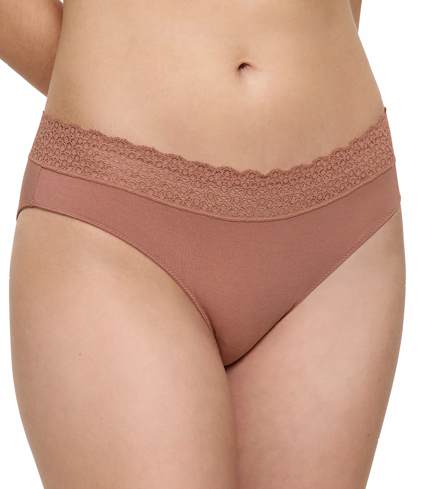 • Majtki typu tai z serii FEEL OF MODAL wykonane z miękkiej tkaniny Lenzing Modal® zapewniają delikatność i komfort noszenia. Pasek z koronkowym wykończeniem i bawełniana wstawka dodają im subtelnej elegancji.