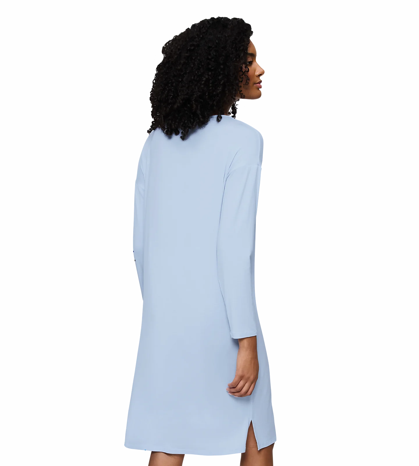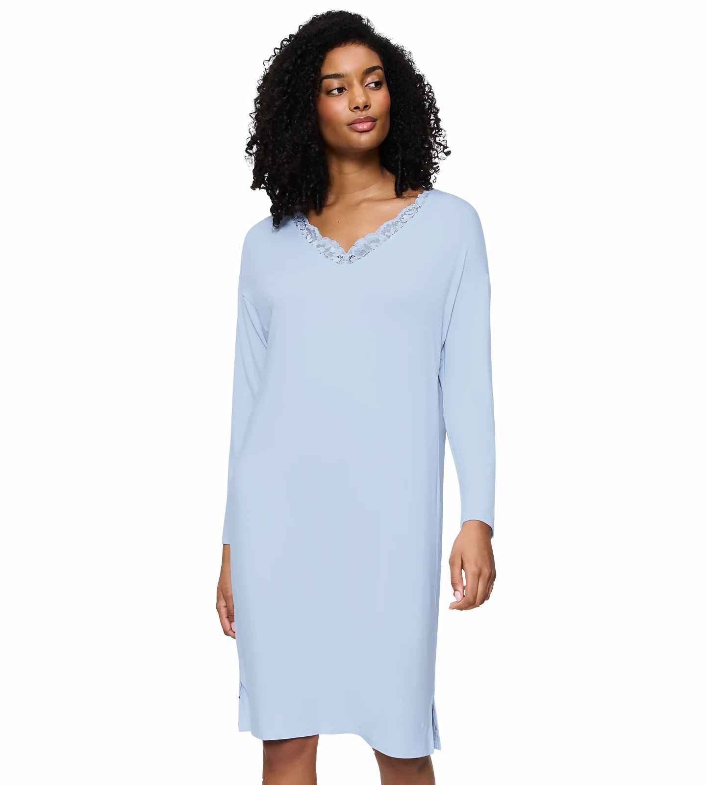 - Koszula nocna za kolana z długimi rękawami, o wygodnym, podkreślającym sylwetkę kroju