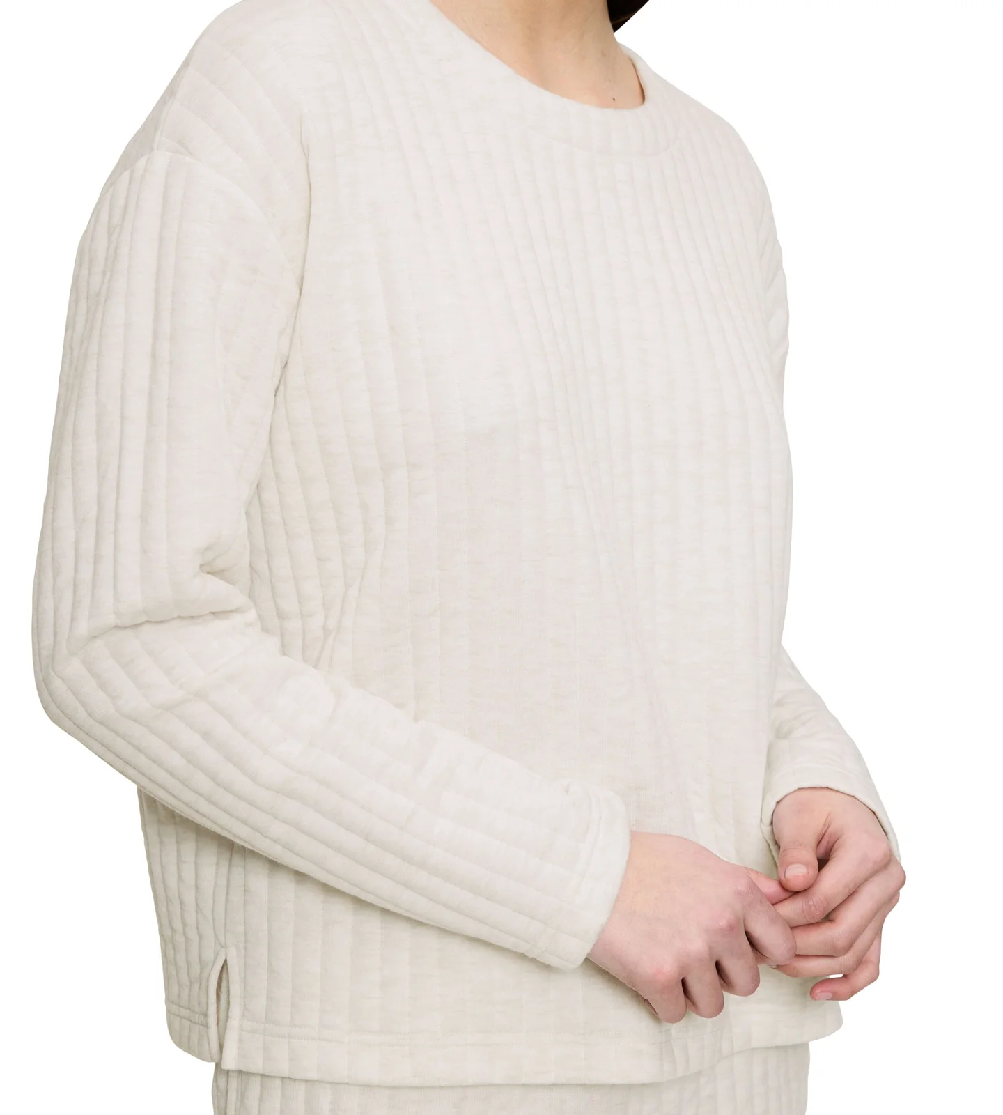 - Sweter z miękkiej, pikowanej tkaniny ma prosty krój z obniżonymi ramionami i okrągłym dekoltem. Przytulny materiał nadaje mu swobodny, codzienny charakter.