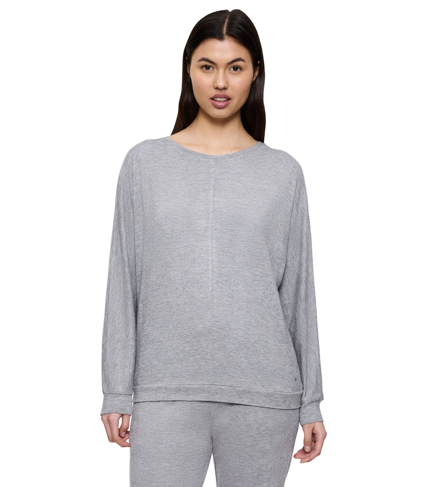 Miękka tkanina przypominająca dzianinę w połączeniu z luźnym krojem sprawia, że to idealny sweter do noszenia jako jedna z warstw odzieży. Rękawy typu nietoperz i dekolt typu łódka dodają elegancji.