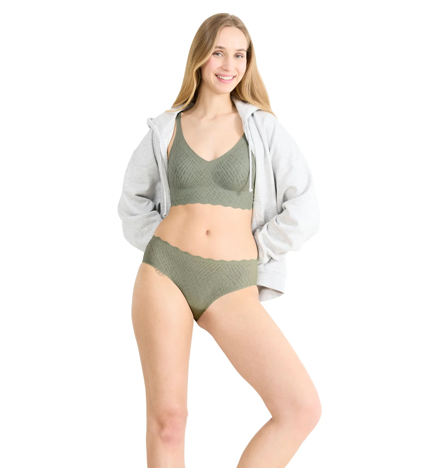 - Majtki typu hipster z linii ZERO Feel Bliss łączą w sobie piękno i wygodę, zapewniając bezszwowy komfort dzięki romantycznej koronce rozciągającej się w zakresie 360°. Swobodnie wycięte krawędzie nie odznaczają się pod obcisłymi ubraniami.