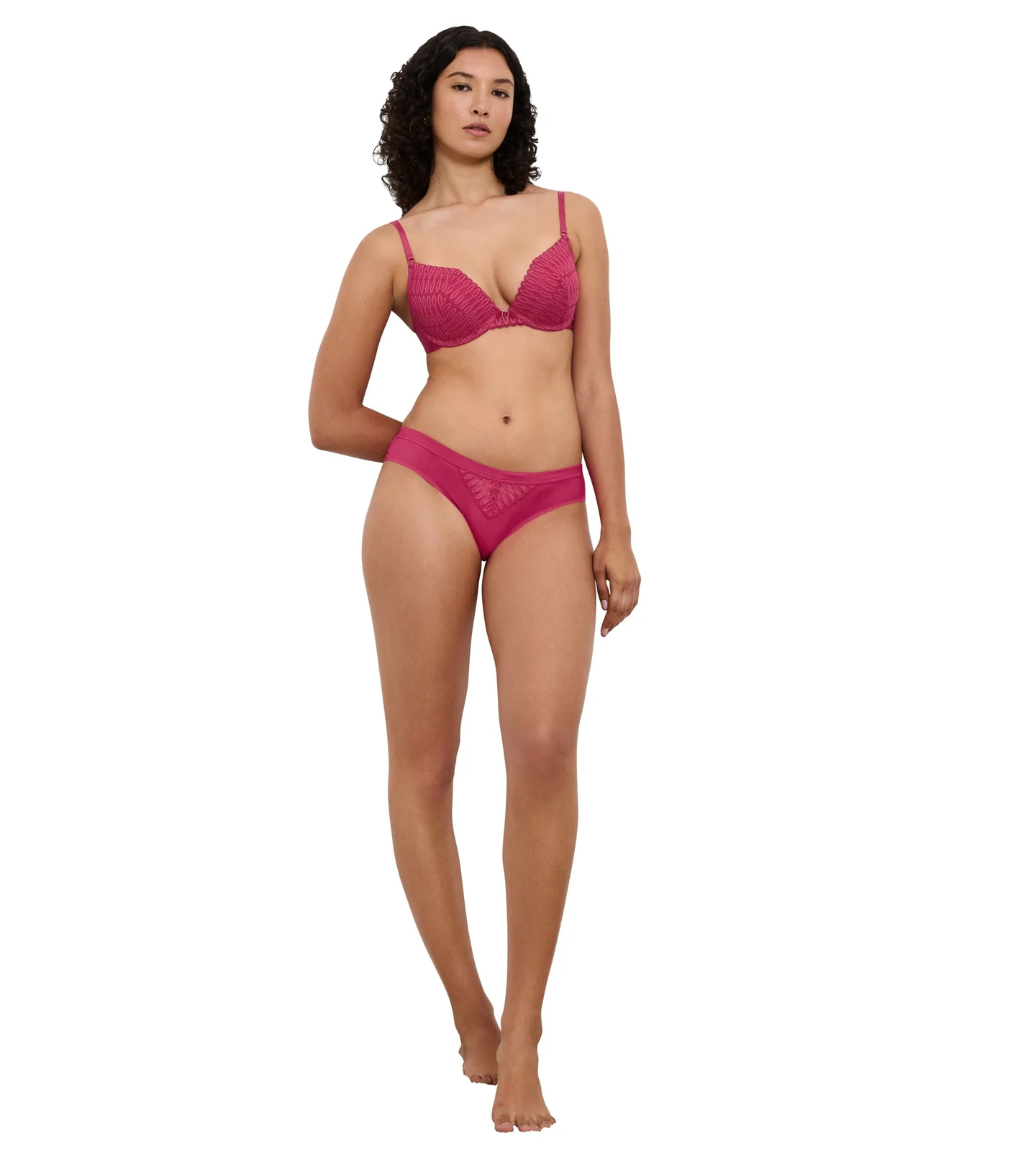 Seria: Aura Spotlight marki Triumph - ponadczasowy, koronkowy push-up z fiszbinami wygodną miseczką, która podkreśla naturalne kształty