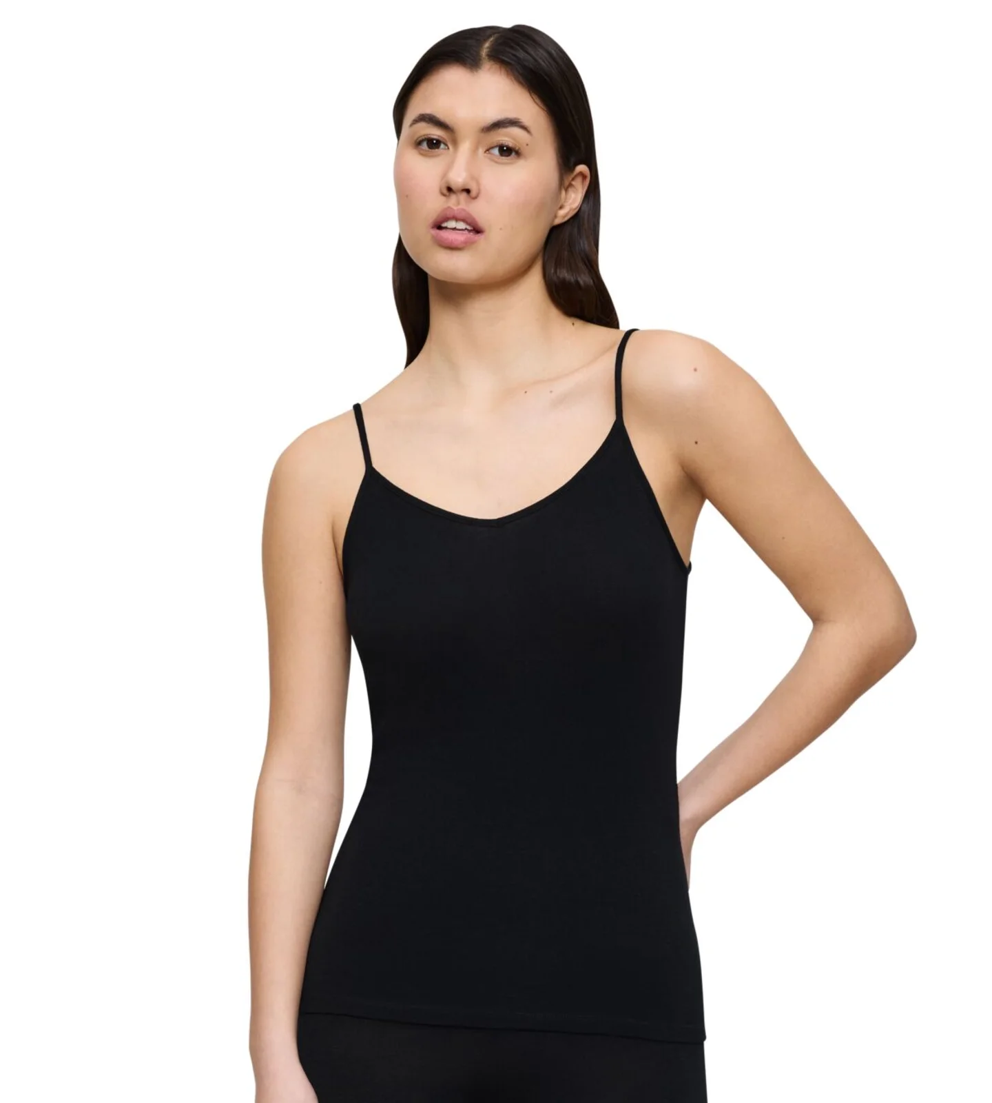 Ten top na cienkich ramiączkach oferuje idealne połączenie wszechstronności i wygody, idealne do codziennego noszenia. Noszony samodzielnie, czy pod ulubionymi ubraniami, zapewnia lekkość i wygodę, dopasowując się do Twojego stylu życia.