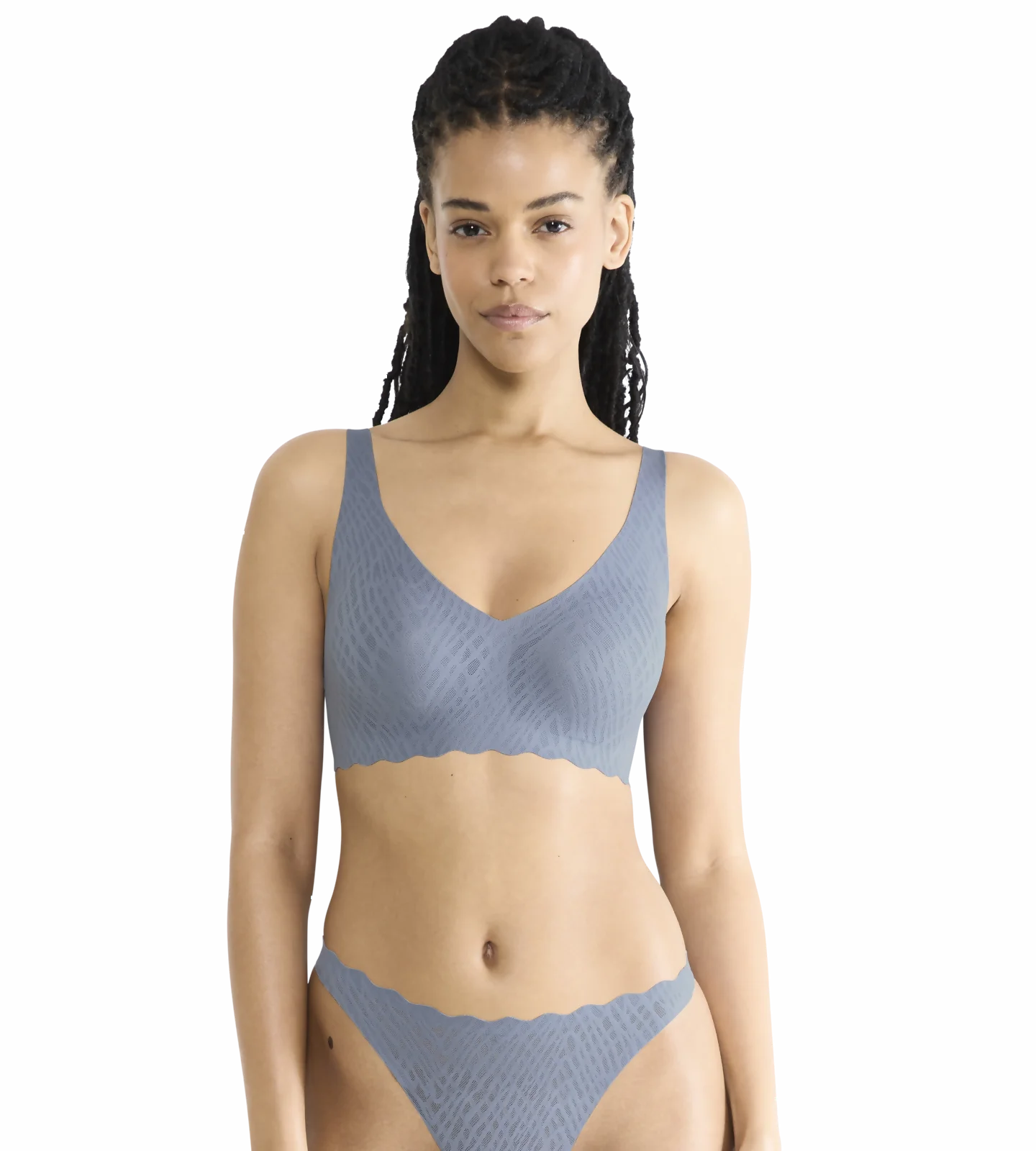 - Miękki biustonosz z linii ZERO Feel Bliss sprawia, że czujesz się wyjątkowo, gwarantując bezszwowy, niezakłócony komfort w połączeniu z piękną koronką rozciągającą się w zakresie 360°. Swobodnie wycięta pofalowana krawędź doskonale przylega do skóry.