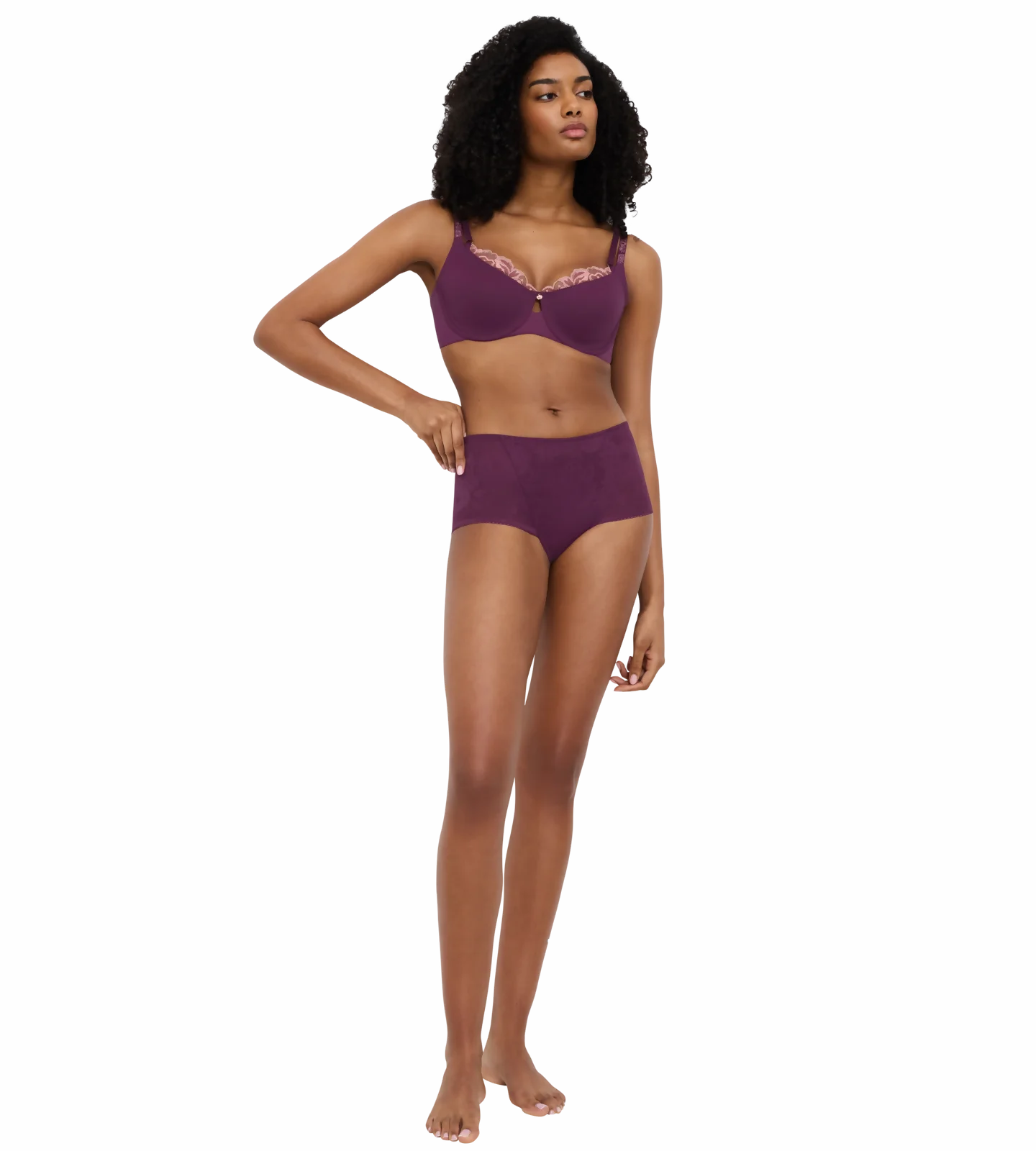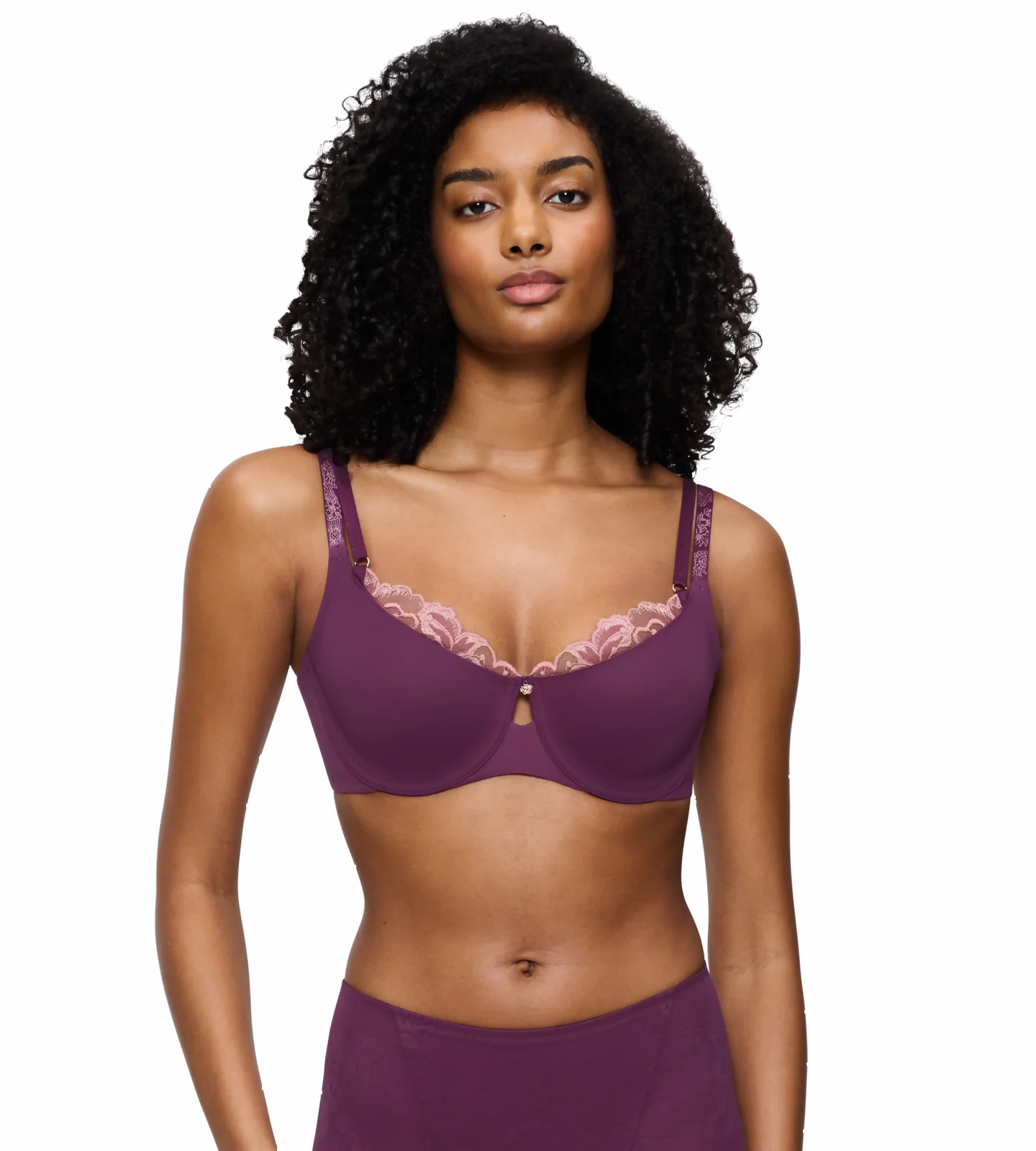 Średnie pokrycie i wygodne fiszbiny gwarantują stabilność i komfort noszenia przez cały dzień, a wycięty tył dodatkowo wspiera dopasowanie. Luksusowa koronka z certyfikowanych materiałów z recyklingu w połączeniu z laminowaną tkaniną TENCEL™ Lyocell nadaje całości wyjątkową lekkość i przewiewność.