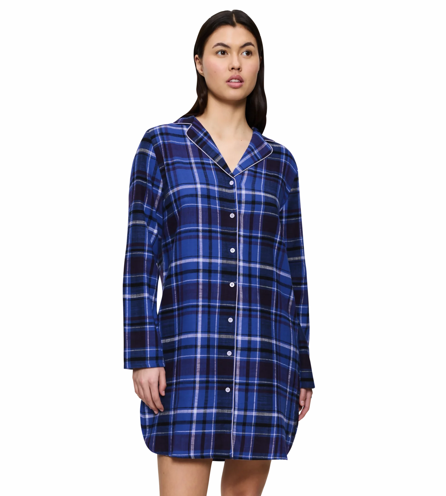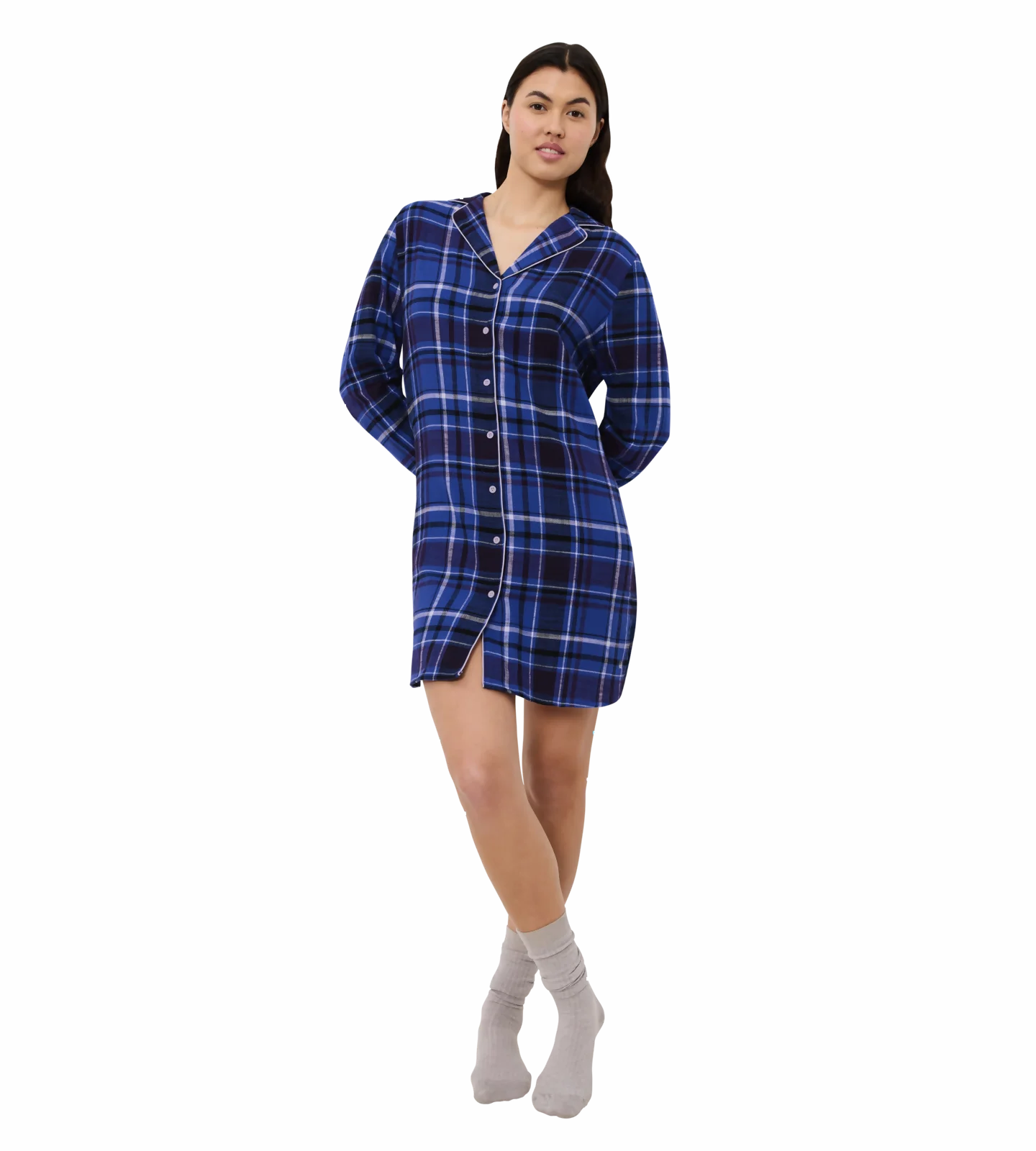 Prosty fason w modną kratę, dekolt z eleganckim kołnierzykiem oraz pełne rozpięcie na guziki sprawiają, że model prezentuje się stylowo i jest niezwykle praktyczny. Długość dopasowana do codziennej wygody gwarantuje swobodę ruchów i pełen komfort podczas snu i wypoczynku.