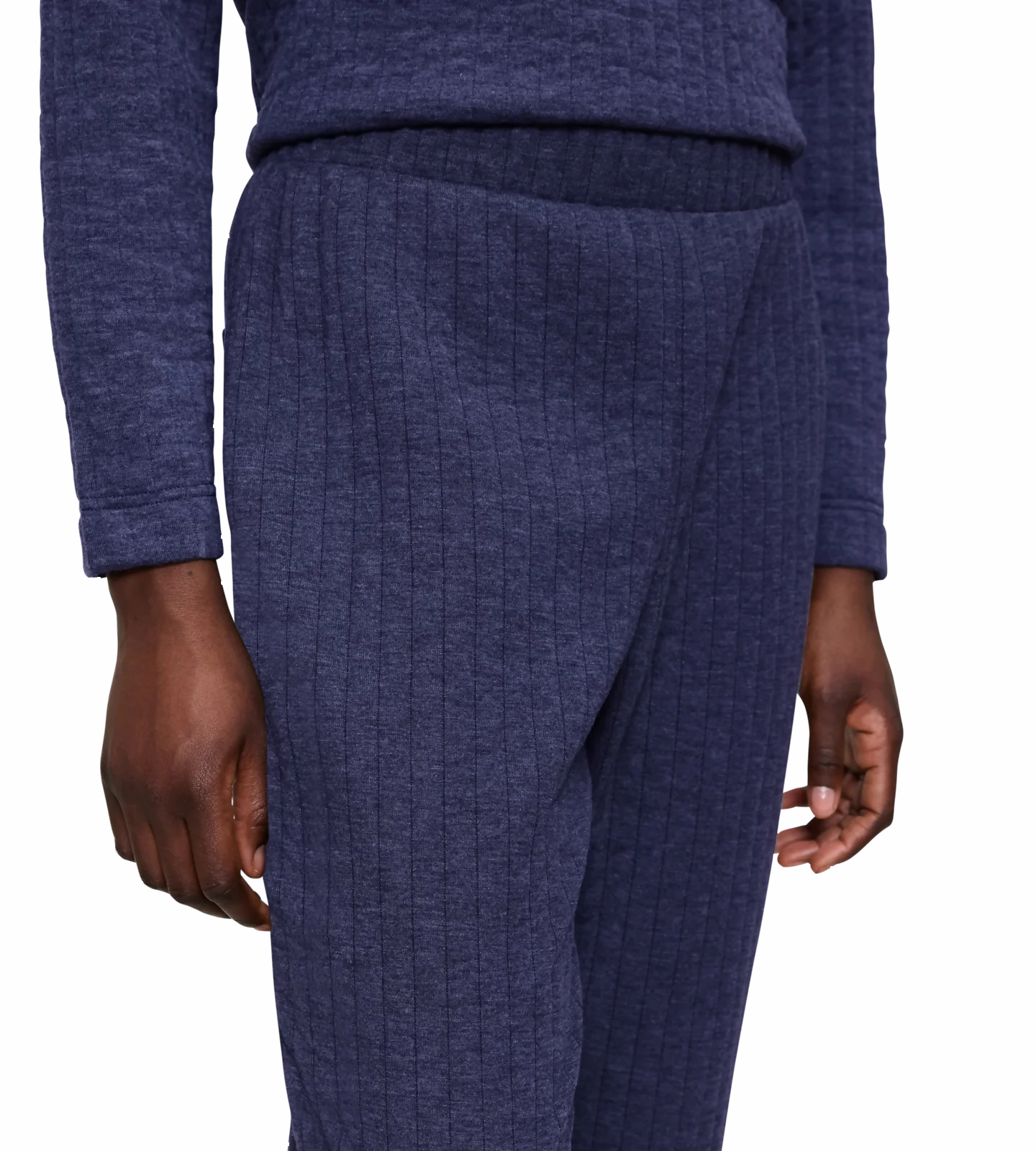 - Długie spodnie z miękkiej, pikowanej tkaniny wyróżniają się eleganckim obszyciem i tylną kieszenią. Nowoczesny fason łączy komfort z subtelną elegancją.