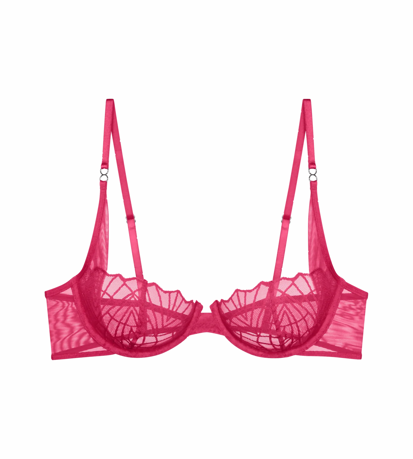 - Biustonosz balkonetka z koronkowymi miseczkami i siateczkowymi panelami zapewnia efekt push-in, subtelnie podkreślając dekolt. Lekki fason z fiszbinami comfort wire łączy uwodzicielski wygląd z wygodą noszenia.