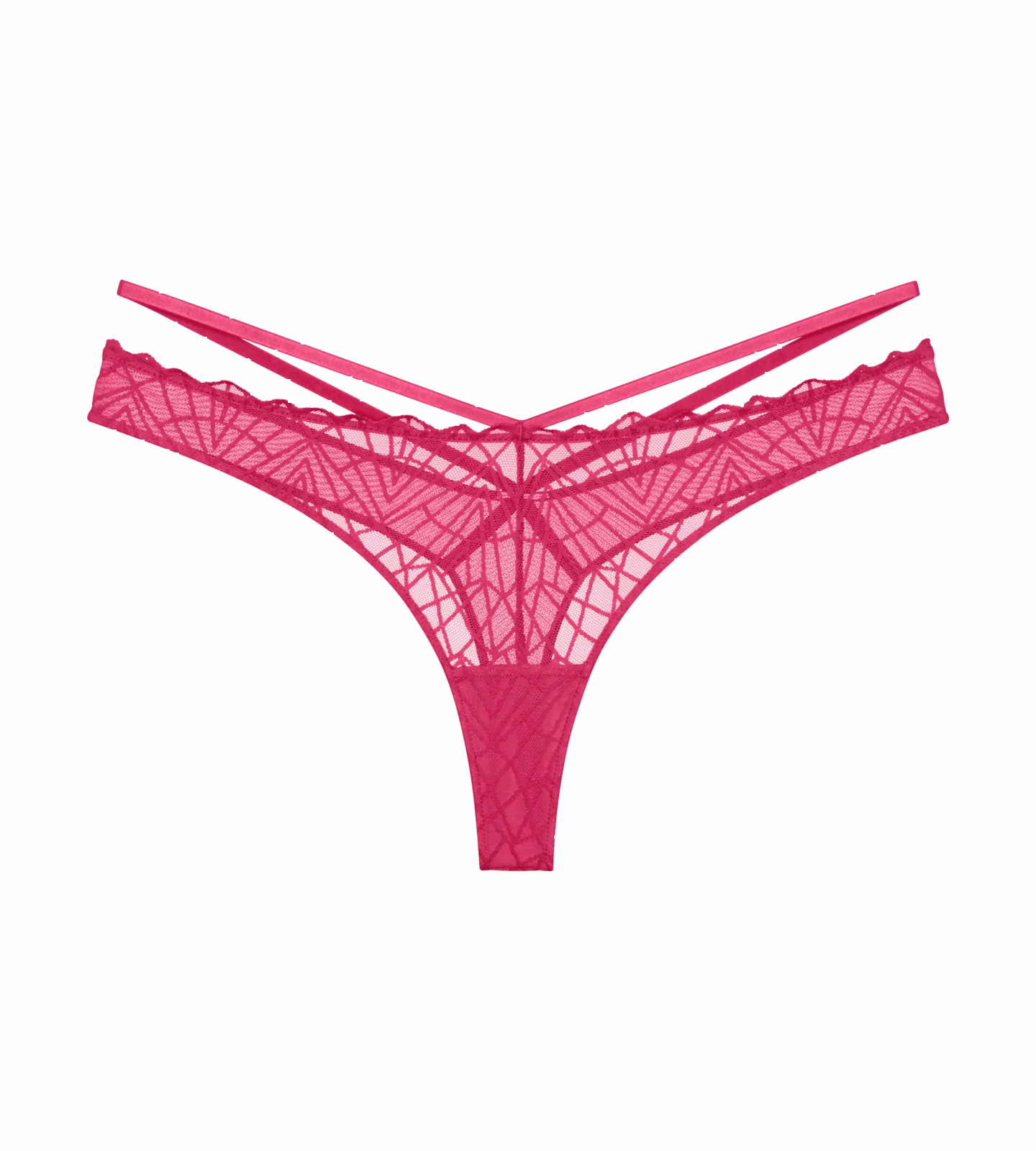 - Stringi z koronkowym przodem i siateczkowym tyłem łączą zmysłowy charakter z nowoczesnym stylem. Ozdobny pasek w talii i mała powierzchnia krycia podkreślają ich uwodzicielski wygląd.