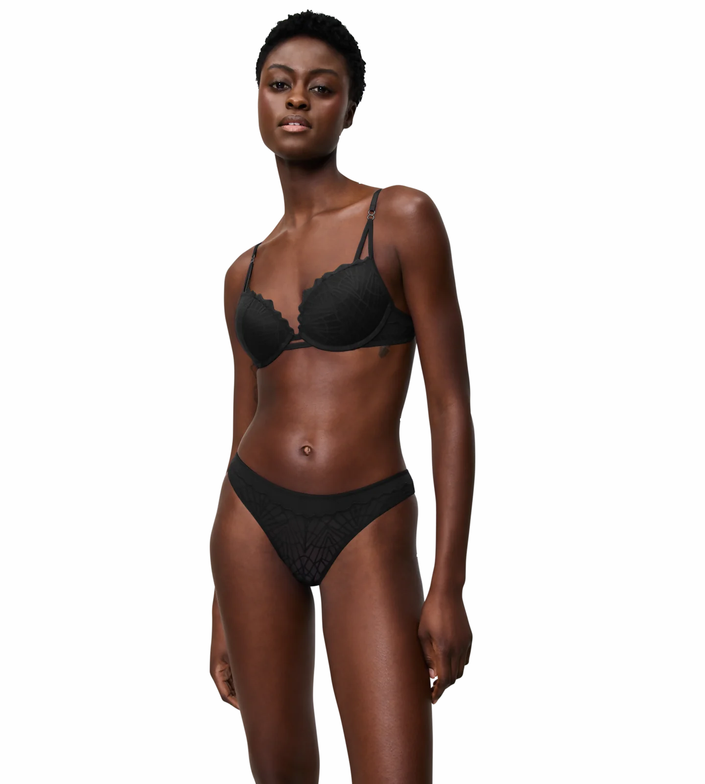Te olśniewające majtki w stylu brazylijskim to połączenie graficznej koronki i seksownej siateczki. Wyjątkowo cienka gumka w talii i wycięcia na nogi sprawiają, że majtki pozostają niewidoczne pod najbardziej dopasowanymi ubraniami.