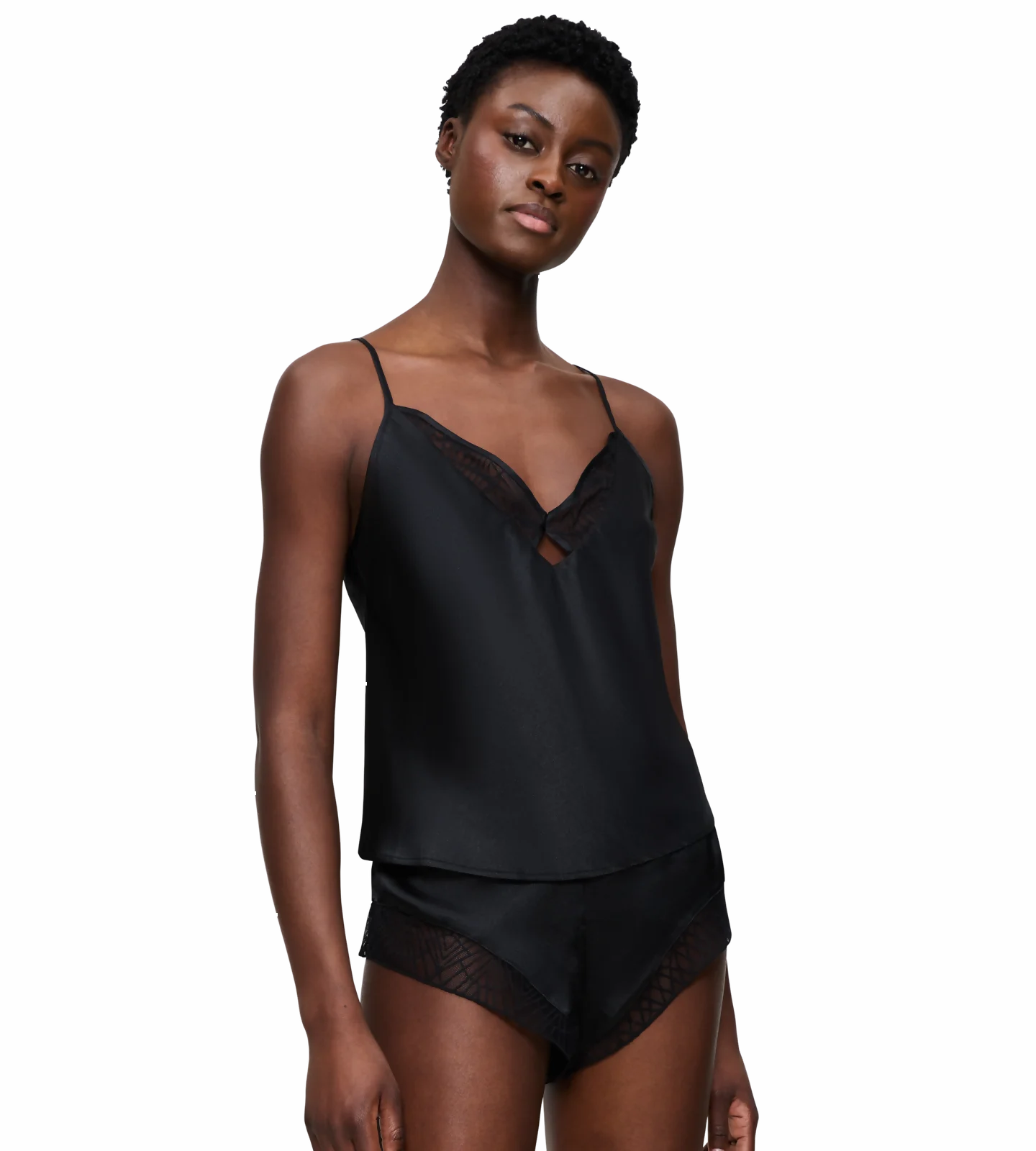 Ten zestaw z koszulką na ramiączkach i szortami to połączenie subtelnej zmysłowości i komfortu. Wykonany z wyjątkowo miękkiej satyny, delikatnie otula ciało, podkreślając sylwetkę i zapewniając przyjemne uczucie na skórze.
