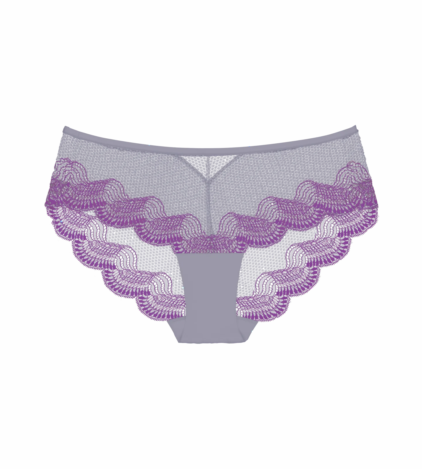 - Figi hipster z dwukolorowej koronki o kwiatowo-graficznym wzorze łączą subtelną elegancję z codziennym komfortem. Średni stopień krycia i bezszwowe wykończenie sprawiają, że pozostają niewidoczne pod ubraniem.