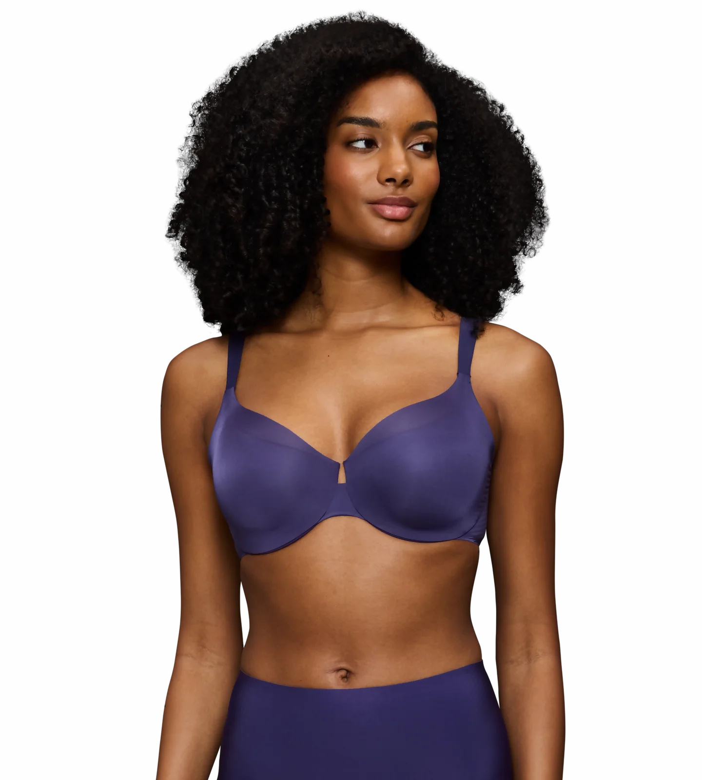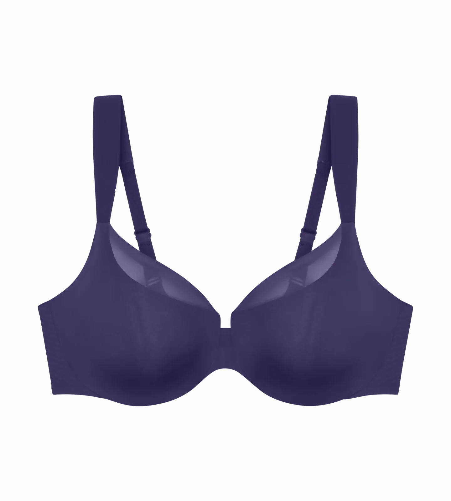 Dwuwarstwowe miseczki i delikatnie prześwitująca linia dekoltu nadają całości lekkości i elegancji. Zintegrowane fiszbiny Comfort Wire, zaokrąglone wycięcie na plecach oraz szerokie ramiączka gwarantują stabilne podtrzymanie i komfort noszenia przez cały dzień.