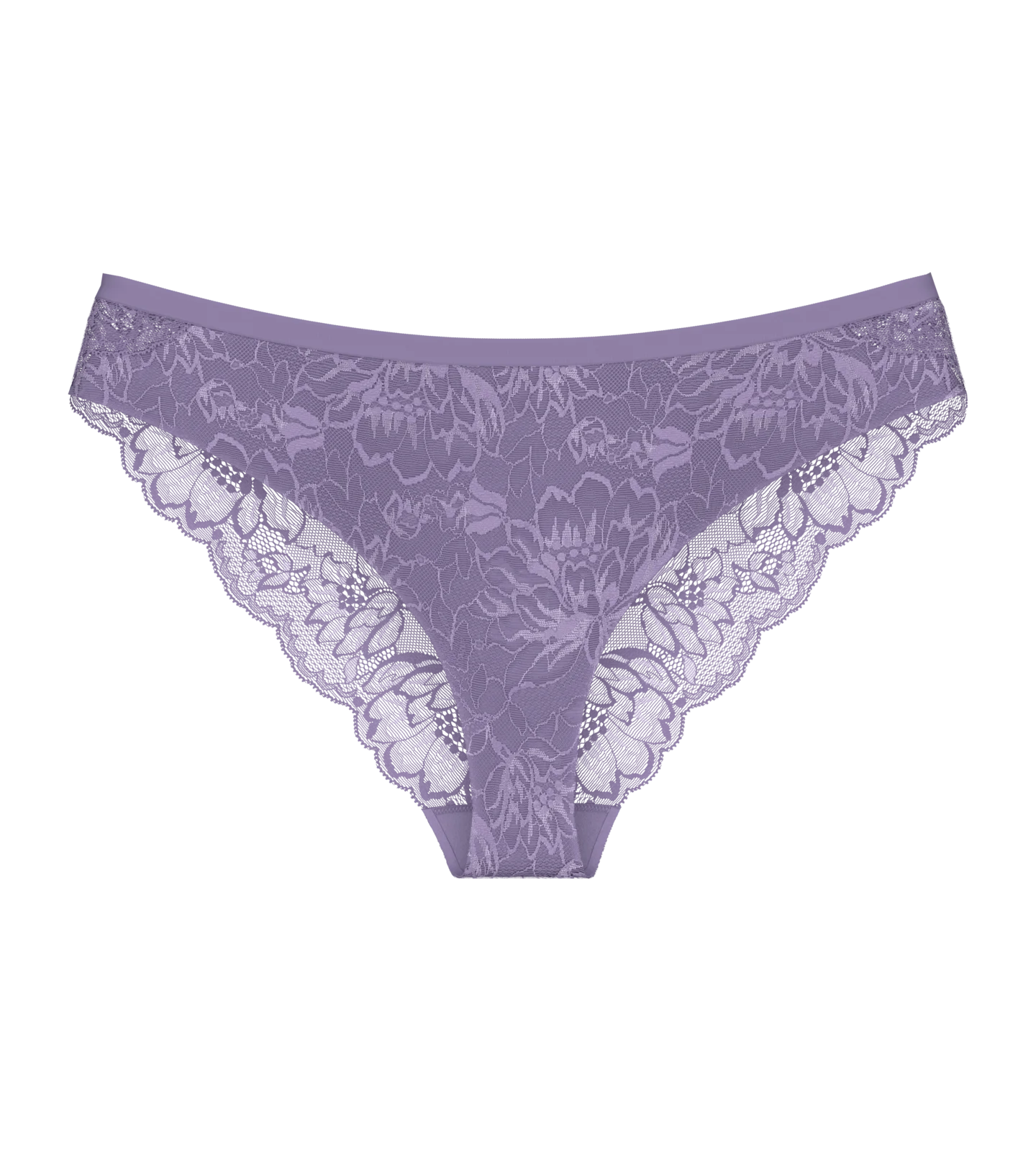 Seria:  Amoerette Charm marki Triumph - Koronkowy majtki damskie typu Brazyliany. Figi ozdobione koronką na całej powierzchni mają uwodzicielski wygląd, ale pozostają niewidoczne pod ubraniem. Wykonane z ekologicznej koronki.