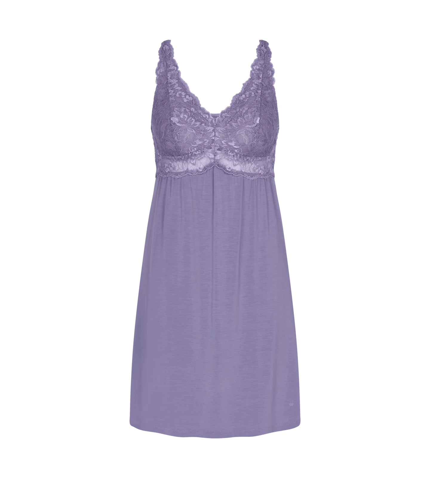 Miękka, przyjemna w dotyku tkanina tej koszuli nocnej układa się na sylwetce z lekkością, tworząc połączenie komfortu i klasycznej elegancji na każdą noc. Koronkowa góra subtelnie podkreśla dekolt i nadaje całości zmysłowego, wyrafinowanego charakteru.
