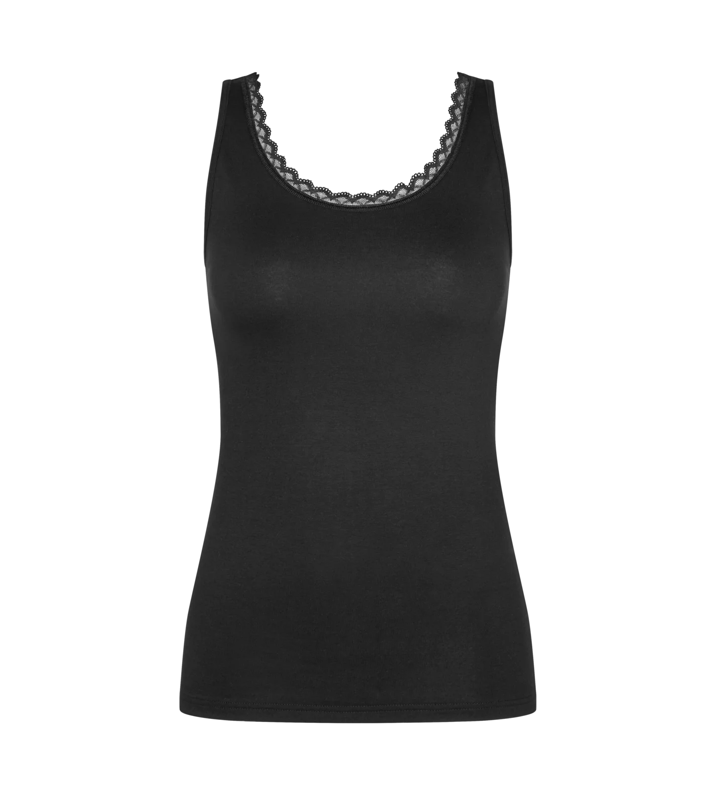 - Top bez rękawów o bezszwowej konstrukcji wykonany z miękkiej bawełny z elastanem. Gładkie dopasowanie i subtelne koronkowe wykończenie tworzą elegancką, codzienną bazę.