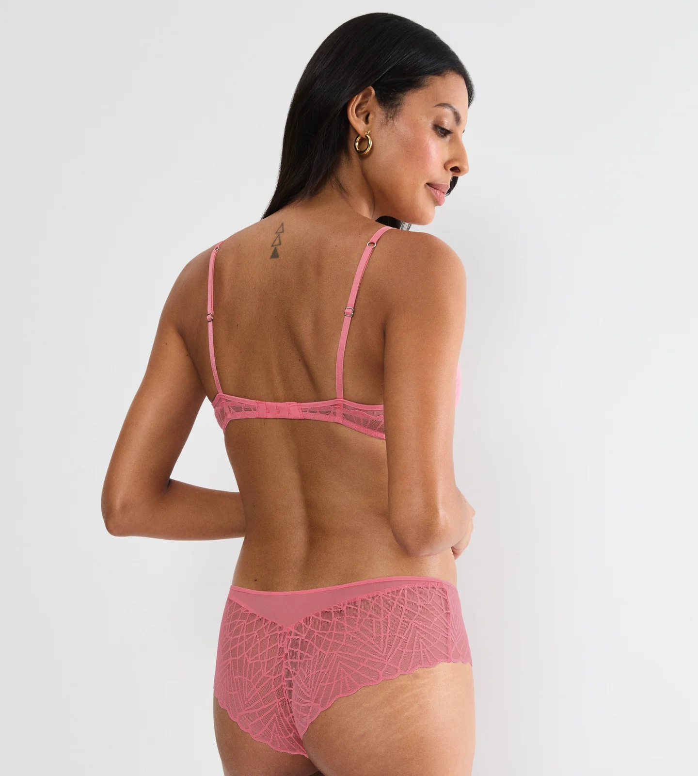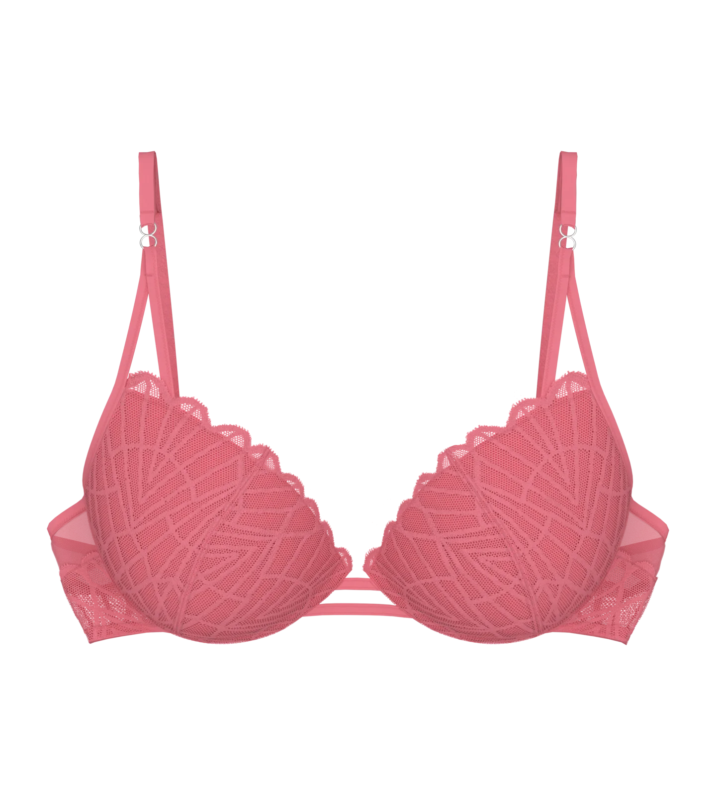 Dekolt w stylu push-up i lekkie miseczki. Biustonosz z graficzną koronką łączy funkcjonalność z atrakcyjnym wyglądem. Z myślą o odważnej i uwodzicielskiej sylwetce.