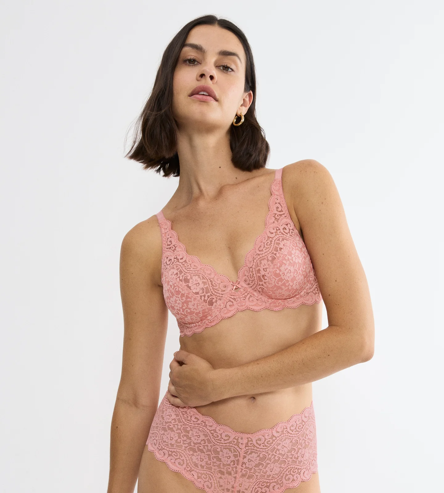 - Miękko podtrzymujące, półprzezroczyste, nieusztywniane miseczki z wygodnej, elastycznej koronki