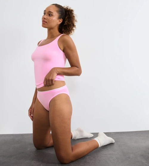 • Dwupak majtek high leg z mikromodalu LENZING™ Modal łączy wyjątkową miękkość z komfortem na co dzień. Bezszwowy krój i płaskie obszycia zapewniają gładkie dopasowanie oraz niewidoczność pod ubraniem.