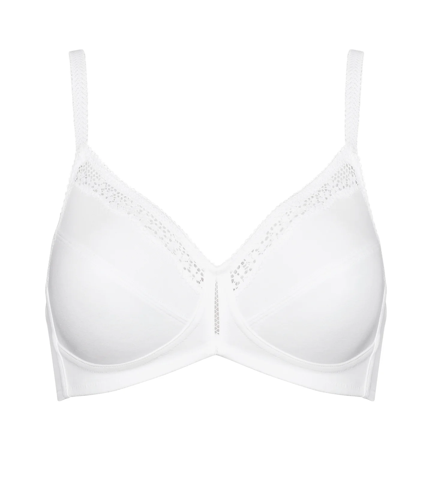 - N - Miękki biustonosz bez fiszbin • Wysoka zawartość bawełny dla naturalnego odczucia i komfortu • Dyskretny dekoracyjny krój z elastyczną koronką • Pręty Trenlo zapewniają trzymanie boczne • W pełni regulowane ramiączka dla idealnej wygody i komfortu.